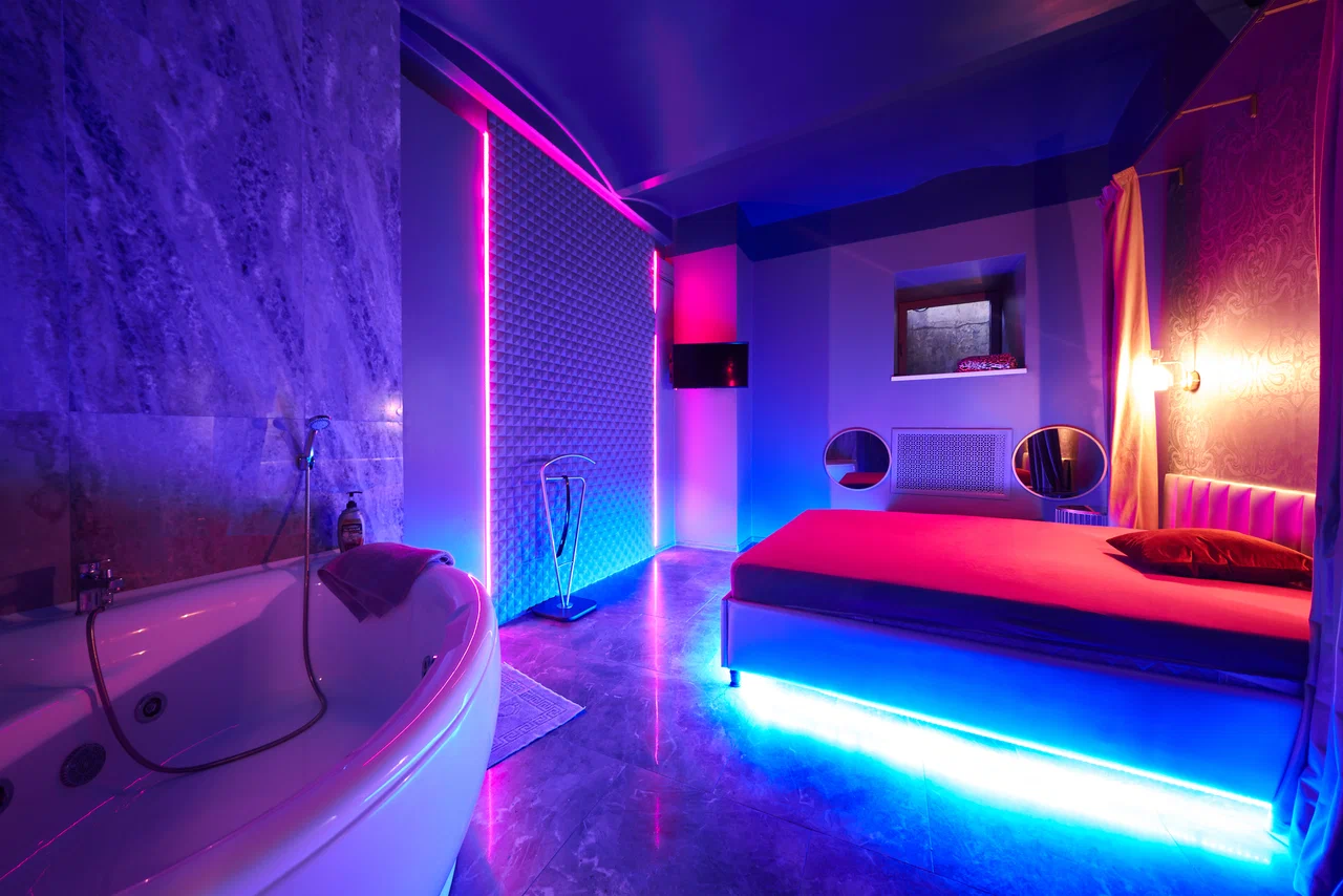 У нас - полностью благоустроенные апартаменты VIP-класса с просторными душевыми кабинками и кроватями «царского» размера. А еще есть возможность подымить ароматным кальяном и разогнать кровь горячительными напитками в баре.